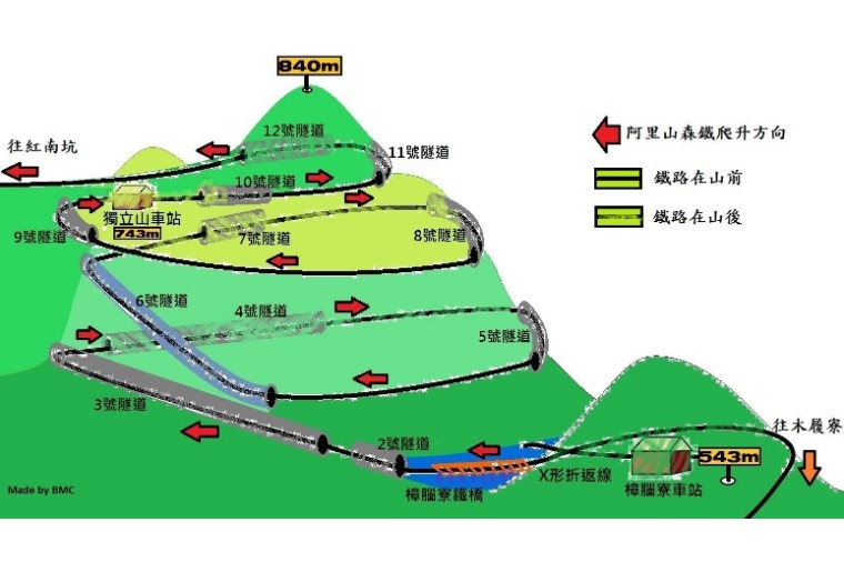 【健走路線】獨立山車站→登山口→獨立山頂→第三迴旋鐵軌→第二迴旋鐵軌→第一迴旋鐵軌→樟腦寮車站